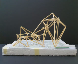 This is a thread play using satay sticks and thread. It allows me to visualize the points and lines from the pattern, as well as exploring different heights. It also helps to explore the points and lines for creating planes and voids.